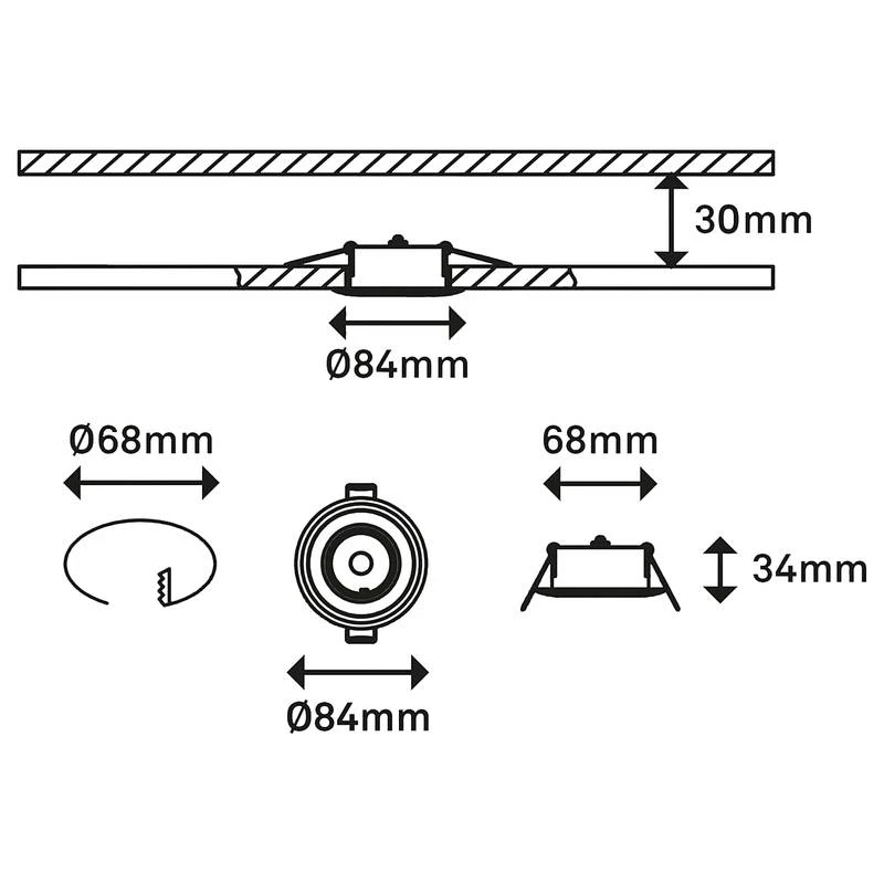 - Profondeur d’encastrage : 3.4 cm